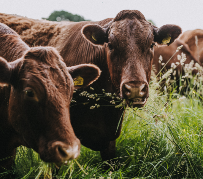 Our cattle are 100% grass fed and grass finished, they only ever eat forage and mother's milk for their entire lives. We never feed our cattle cereals or soya. In the winter if our cattle are not out on grass they eat silage or hay that is cut from the farm earlier in the year and stored ready for winter feeding.
